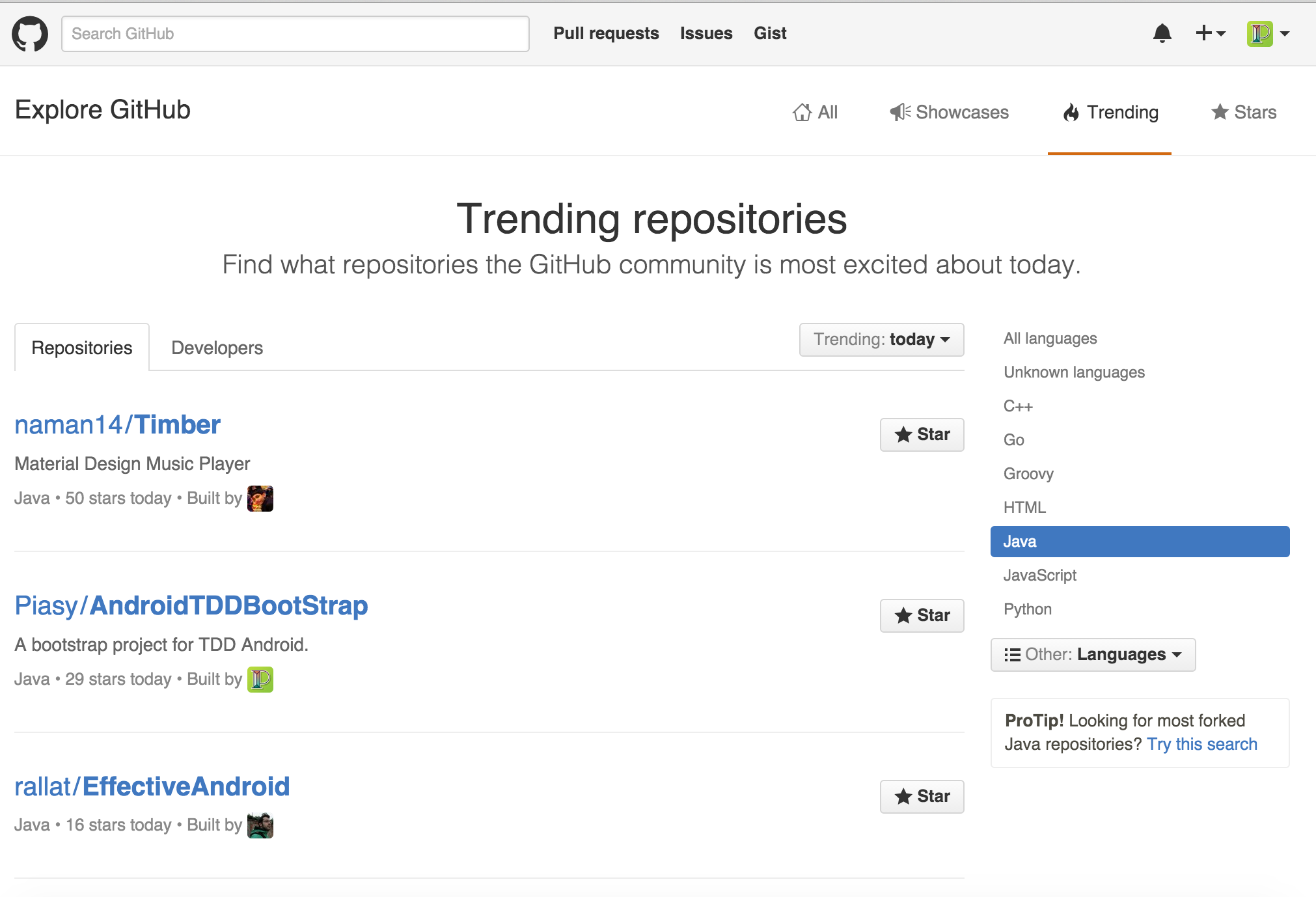 2015 年 10 月 3 号,AndroidTDDBootStrap 登上 Github trending 日榜第二