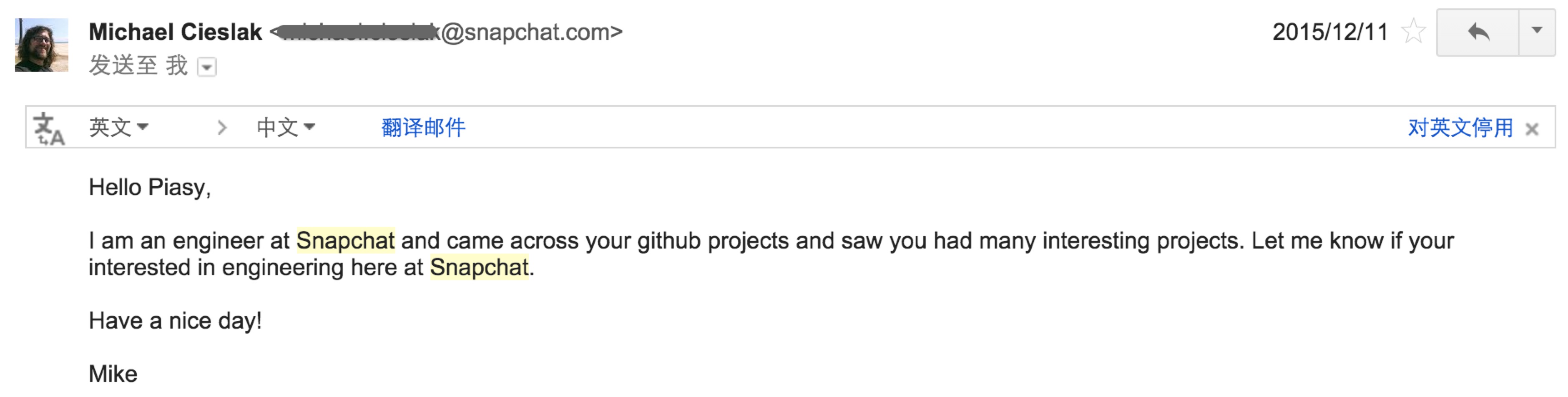 2015 年 12 月 11 号,收到 Snapchat 团队的面试邀请